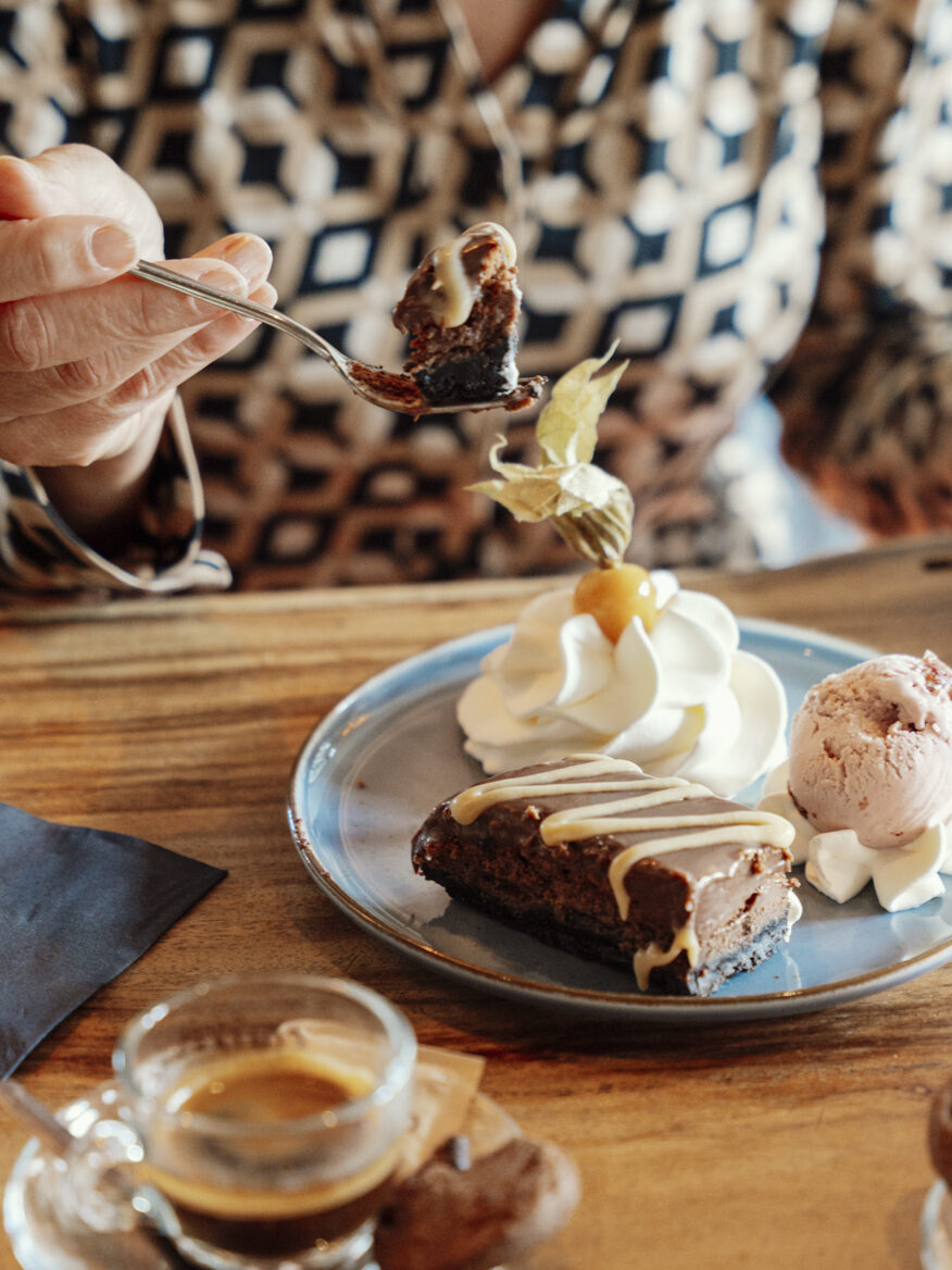 Met amarena kersen-ijs | caramelsaus | slagroom